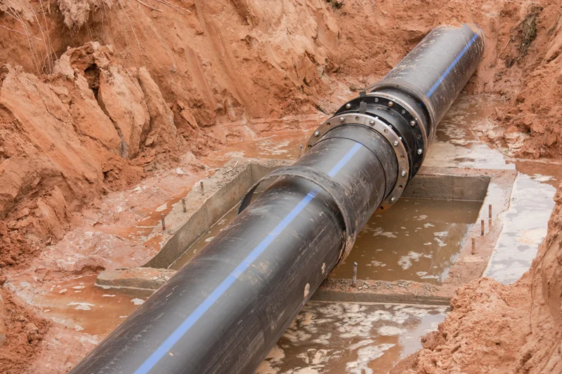 No — not when the entire system uses heat-fused joints. Fully fused HDPE is self-restraining. Thrust blocks are only needed if gasketed mechanical fittings are used (similar to PVC or ductile iron systems).